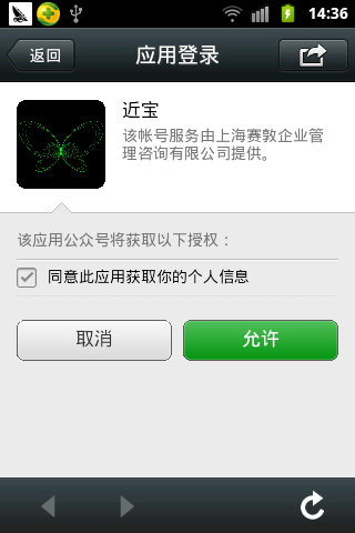 點擊綁定后,彈出應用授權界面