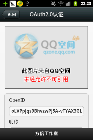 { "openid": "oLVPpjqs9BhvzwPj5A-vTYAX3GLc", "nickname": "方倍", "sex": 1, "language": "zh_CN", "city": "Shenzhen", "province": "Guangdong", "country": "CN", "headimgurl": "http://wx.qlogo.cn/mmopen/utpKYf69VAbCRDRlbUsPsdQN38DoibCkrU6SAMCSNx558eTaLVM8PyM6jlEGzOrH67hyZibIZPXu4BK1XNWzSXB3Cs4qpBBg18/0", "privilege": []}參數解讀: