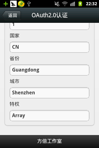 至此,在不輸入我的賬號及密碼的情況下,微信公眾賬號近寶獲得了我的個人信息,這些信息包括昵稱、性別、國家、省份、城市、個人頭像以及特權列表。