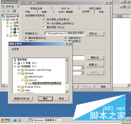 點擊瀏覽中,找到以解壓的asp網站管理系統路徑選上。