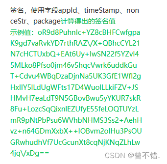 nonceStr: 隨機字符串(注意是JSAPI下單接口中返回的 nonce_str、不是重新生成)