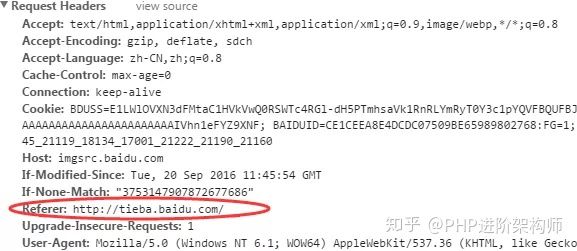 主要是該站點的圖片采用了防盜鏈的規則,其實這個規則也比較簡單, 和大家一說就知道啦,主要是該站點在得知有請求時,會先判斷請求頭中的信息,如果請求頭中有Referer信息,然后根據自己的規則來判斷Referer頭信息是否符合要求,Referer 信息是請求該圖片的來源地址。