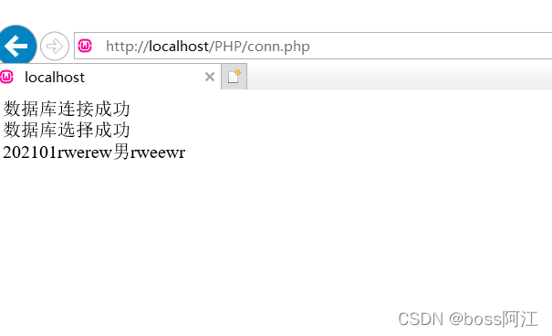 出現(xiàn)如下內(nèi)容即代表鏈接數(shù)據(jù)庫成功,并調(diào)用數(shù)據(jù)庫數(shù)據(jù)成功。(如數(shù)據(jù)庫里面沒有數(shù)據(jù)則可能會報錯)