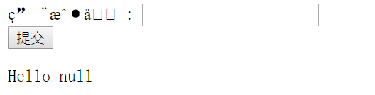 <form action="test.jsp"> 用戶名 : <input type="text" name="username" /> <br /> <input type="submit"></form> Hello <%=request.getParameter("username")%>這時問題出現: