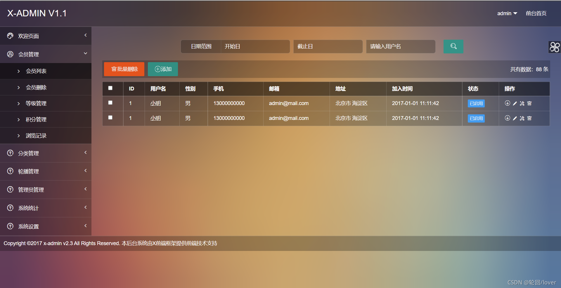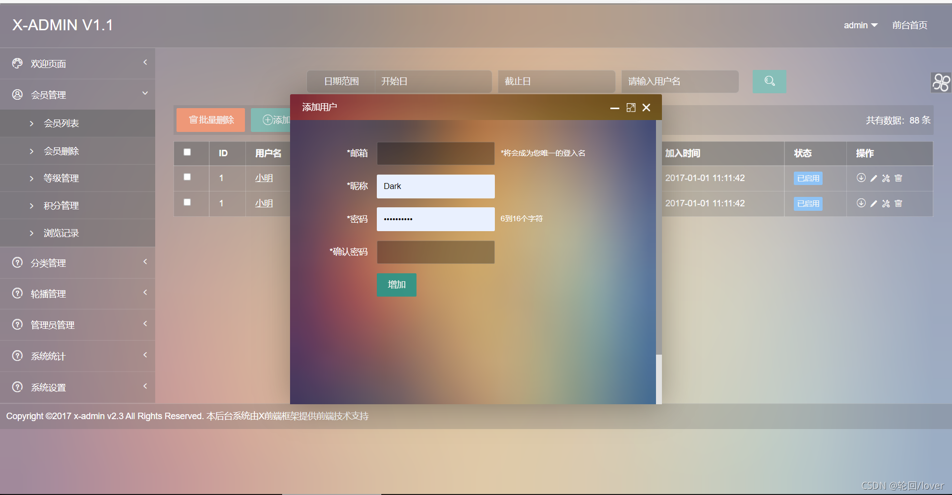十分炫酷的登陸界面加完善的后臺登陸界面截圖: