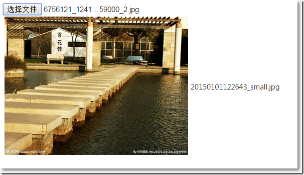 using System;using System.Collections.Generic;using System.IO;using System.Linq;using System.Web;using System.Web.Mvc;using ImageResizer;using MvcApplication10.Models;namespace MvcApplication10.Controllers{ public class HomeController : Controller {public ActionResult Index(){ return View();}//接收上傳圖片[HttpPost]public ActionResult UploadFile(){ //允許的圖片格式 var allowedExtensions = new[] { ".png", ".gif", ".jpg", ".jpeg" }; //返回給前臺的結果,最終以json返回 List<UploadFileResult> results = new List<UploadFileResult>(); //遍歷從前臺傳遞而來的文件 foreach (string file in Request.Files) {//把每個文件轉換成HttpPostedFileBaseHttpPostedFileBase hpf = Request.Files[file] as HttpPostedFileBase;//如果前臺傳來的文件為null,繼續遍歷其它文件if (hpf.ContentLength == 0 || hpf == null){ continue;}else{ if (hpf.ContentLength > 1024*1024) //如果大于規定最大尺寸 {results.Add(new UploadFileResult(){ FileName = "", FilePath = "", IsValid = false, Length = hpf.ContentLength, Message = "圖片尺寸不能超過1024KB", Type = hpf.ContentType}); } else {var extension = Path.GetExtension(hpf.FileName);if (!allowedExtensions.Contains(extension))//如果文件的后綴名不包含在規定的后綴數組中{ results.Add(new UploadFileResult() {FileName = "",FilePath = "",IsValid = false,Length = hpf.ContentLength,Message = "圖片格式必須是png、gif、jpg或jpeg",Type = hpf.ContentType });}else{ //給上傳文件改名 string date = DateTime.Now.ToString("yyyyMMddhhmmss"); //目標文件夾的相對路徑 ImageSize需要的格式 string pathForSaving = Server.MapPath("~/AjaxUpload/"); //目標文件夾的相對路徑 統計文件夾大小需要的格式 string pathForSaving1 = Server.MapPath("~/AjaxUpload"); //在根目錄下創建目標文件夾AjaxUpload if (this.CreateFolderIfNeeded(pathForSaving)) {//保存小圖var versions = new Dictionary<string, string>();versions.Add("_small", "maxwidth=400&maxheight=250&format=jpg");//versions.Add("_medium", "maxwidth=200&maxheight=200&format=jpg");//versions.Add("_large", "maxwidth=600&maxheight=600&format=jpg");//保存各個版本的縮略圖foreach (var key in versions.Keys){ hpf.InputStream.Seek(0, SeekOrigin.Begin); ImageBuilder.Current.Build(new ImageJob(hpf.InputStream,pathForSaving + date + key, //不帶后綴名的圖片名稱new Instructions(versions[key]),false,//是否保留原圖true));//是否增加后綴}results.Add(new UploadFileResult(){ FileName = date + "_small" + ".jpg", FilePath = Url.Content(String.Format("~/AjaxUpload/{0}", date + "_small" + ".jpg")), IsValid = true, Length = hpf.ContentLength, Message = "上傳成功", Type = hpf.ContentType}); } } }} } return Json(new {filename = results[0].FileName,filepath=results[0].FilePath,isvalid=results[0].IsValid,length=results[0].Length,message=results[0].Message,type=results[0].Type });}//根據文件名刪除文件[HttpPost]public ActionResult DeleteFileByName(string smallname){ string pathForSaving = Server.MapPath("~/AjaxUpload"); System.IO.File.Delete(Path.Combine(pathForSaving, smallname)); return Json(new {msg = true });}//根據相對路徑在項目根路徑下創建文件夾private bool CreateFolderIfNeeded(string path){ bool result = true; if (!Directory.Exists(path)) {try{ Directory.CreateDirectory(path);}catch (Exception){ result = false;} } return result;} }}在Home/Index.cshtml中,使用checkFileTypeAndSize.js插件來限制上傳圖片的大小和格式,使用FormData對象來接收圖片文件并傳遞給服務端,客戶端接收到服務端json數據動態創建表格行把預覽圖顯示出來。