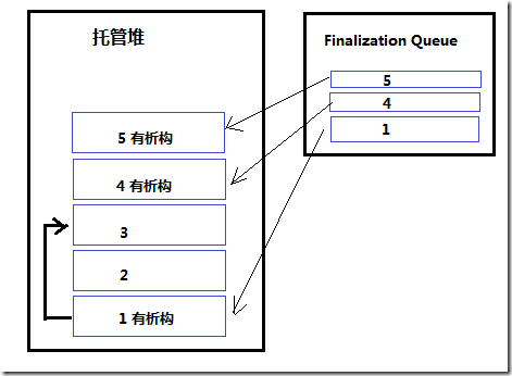 public class Sample{ //析構(gòu)函數(shù) ~Sample() { }}在托管堆中,那些帶有析構(gòu)函數(shù)的實(shí)例,將被放置到"Finalization Queue"中。