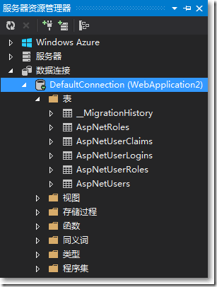 點擊VS2013的左上角"服務器資源管理器",右鍵"DefaultConnection",從中可以查看所有的數據。