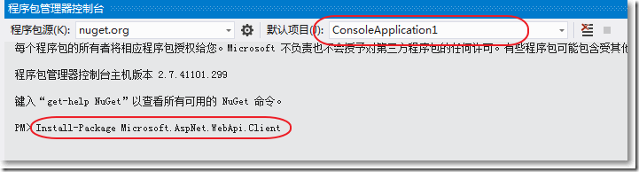 static void Main(string[] args){ RunAsync().Wait(); Console.ReadKey();}static async Task RunAsync(){ using (var client = new HttpClient()) {//設(shè)置client.BaseAddress = new Uri("http://localhost:1310/");client.DefaultRequestHeaders.Accept.Clear();client.DefaultRequestHeaders.Accept.Add(new MediaTypeWithQualityHeaderValue("application/json"));//添加var myProduct = new Product() { Name = "myproduct", Price = 88, Category = "other" };HttpResponseMessage response = await client.PostAsJsonAsync("api/Product", myProduct);//異步獲取數(shù)據(jù)response = await client.GetAsync("/api/Product");if (response.IsSuccessStatusCode){ IEnumerable<Product> products = await response.Content.ReadAsAsync<IEnumerable<Product>>(); foreach (var item in products) {Console.WriteLine("{0}\t{1}元\t{2}", item.Name, item.Price, item.Category); } } }}