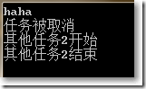 static void Main(string[] args){ var source = new CancellationTokenSource(); try {var t1 = Task.Factory.StartNew(() => DoSth(1, 1000, source.Token)).ContinueWith((pre) => DoOtherThing(2, 2000));source.Cancel(); } catch (Exception ex) {Console.WriteLine(ex.GetType()); } Console.WriteLine("haha"); Console.ReadKey();}static void DoSth(int id, int sleepTime, CancellationToken token){ if (token.IsCancellationRequested) {Console.WriteLine("任務被取消");token.ThrowIfCancellationRequested(); } Console.WriteLine("任務{0}開始",id); Thread.Sleep(sleepTime); Console.WriteLine("任務{0}結束",id);}static void DoOtherThing(int id, int sleepTime){ Console.WriteLine("其他任務{0}開始", id); Thread.Sleep(sleepTime); Console.WriteLine("其他任務{0}結束", id);}