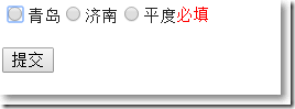 @model MvcApplication1.Models.Vm@{ ViewBag.Title = "Index"; Layout = "~/Views/Shared/_Layout.cshtml";}<style type="text/css"> .RadioButton { float:left; }</style>@using (Html.BeginForm("Index", "Home", FormMethod.Post, new {id = "addForm"})){ @Html.RadioButtonListFor(v => v.CityId, ViewData["c"] as IEnumerable<SelectListItem>) @Html.ValidationMessageFor(v => v.CityId) <input type="submit" value="提交"/>}以上就是這篇文章的全部內(nèi)容了,希望本文的內(nèi)容對(duì)大家的學(xué)習(xí)或者工作具有一定的參考學(xué)習(xí)價(jià)值,謝謝大家對(duì)的支持。如果你想了解更多相關(guān)內(nèi)容請(qǐng)查看下面相關(guān)鏈接