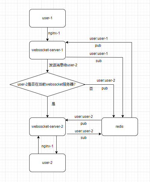 每次發(fā)送消息的時候你會知道你要發(fā)送給誰,不在當前服務器的話則發(fā)送到redis的user:用戶唯一標識頻道,這樣的話目標WebSocket就能收到消息了。