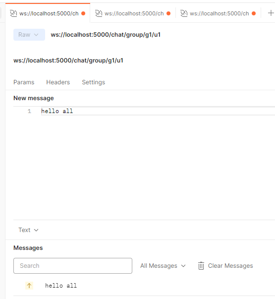 private async Task HandleGroup(string groupId, string userId, WebSocket webSocket, object msgBody){ //判斷群組是否存在 var hasValue = GroupUser.TryGetValue(groupId, out var users); if (!hasValue) {byte[] sendByte = Encoding.UTF8.GetBytes($"group【{groupId}】 not exists");await webSocket.SendAsync(new ArraySegment<byte>(sendByte, 0, sendByte.Length), WebSocketMessageType.Text, true, CancellationToken.None);return; } //只有加入到當前群組,才能在群組內(nèi)發(fā)送消息 if (!users.Contains(userId)) {byte[] sendByte = Encoding.UTF8.GetBytes($"user 【{userId}】 not in 【{groupId}】");await webSocket.SendAsync(new ArraySegment<byte>(sendByte, 0, sendByte.Length), WebSocketMessageType.Text, true, CancellationToken.None);return; } _logger.LogInformation($"group 【{groupId}】 user 【{userId}】 send:{msgBody}"); //發(fā)送群組消息 ChannelMsgBody channelMsgBody = new ChannelMsgBody { FromId = userId, ToId = groupId, Msg = msgBody.ToString() }; _redisClient.Publish($"{groupPrefix}{groupId}", JsonConvert.SerializeObject(channelMsgBody));}加入群組之后則可以發(fā)送和接收群組內(nèi)的消息了,給群組發(fā)送消息的格式如下