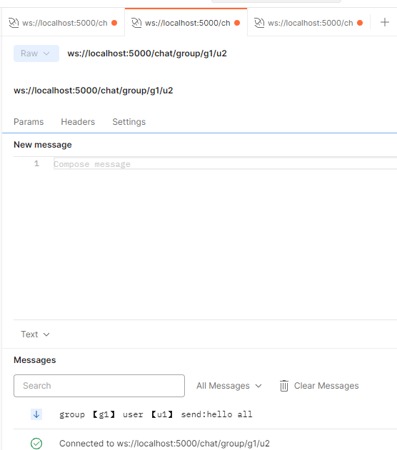 用Postman連接三個連接唯一標識分別是1、2、3,模擬一下消息發(fā)送,效果如下,發(fā)送效果