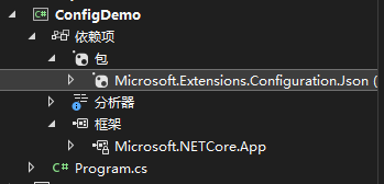 安裝 Microsoft.Extensions.Configuration.Json NuGet 包,該包提供json配置文件讀取。