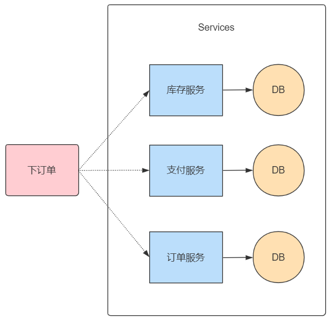 以提交訂單為例,假設(shè)場景是分布式系統(tǒng)下,進程間以消息傳遞進行通信: