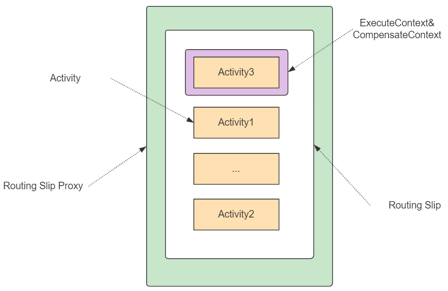 構(gòu)建Routing Slip,此處依據(jù)用例的需求,對需要協(xié)作的服務編排,組合一系列的Activity。