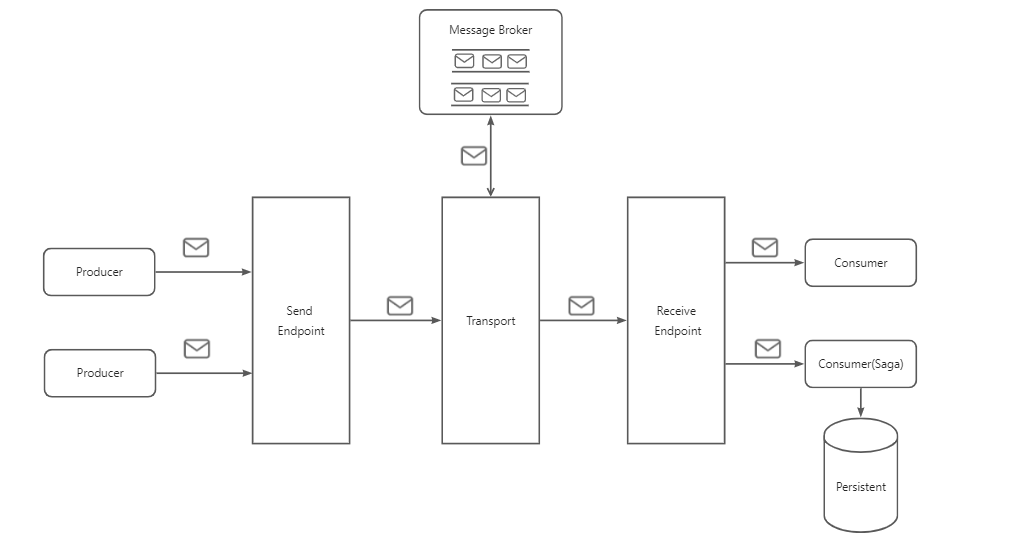 - ReceiveEndpoint:接收端點,用于從傳輸模塊接收消息,反序列化消息內容,并將消息路由到消費者。