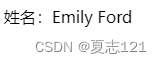 <!DOCTYPE html><html lang="en"><head> <meta charset="UTF-8"> <meta http-equiv="X-UA-Compatible" content="IE=edge"> <meta name="viewport" content="width=device-width, initial-scale=1.0"> <title>Document</title> <script src="../../vue-2.7.14.js"></script></head><body> <div id="root">姓名:{{fullName}} </div> <script>const vm = new Vue({ el: "#root", data: {firstName: "Emily",lastName: "Ford" }, computed: {fullName: { get: function () {return this.firstName + " " + this.lastName; }, set: function () {var name = newValue.split("");this.firstName = names[0];this.lastName = names[1]; }} }}) </script></body></html>執(zhí)行結(jié)果: