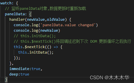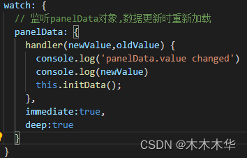 監聽傳的數據,這里面用到了兩個屬性immediate和deep,在watch中,不會監聽初始值,只有當值改變時才會執行handler函數。但是,我們想要在最初賦值的時候,也執行handler函數,就需要用到immediate:true。而普通監聽只能監聽字符串、數字等值,要想監聽到對象中某個屬性的變化,就需要用到深度監聽deep:true。