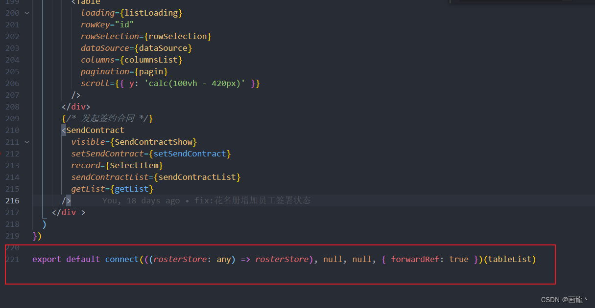 const CompA = React.forwardRef<OutputInterface, IProps>((props, ref) => {? // ...})export default connect(mapStateToProps, mapDispatchToProps)(CompA);原因