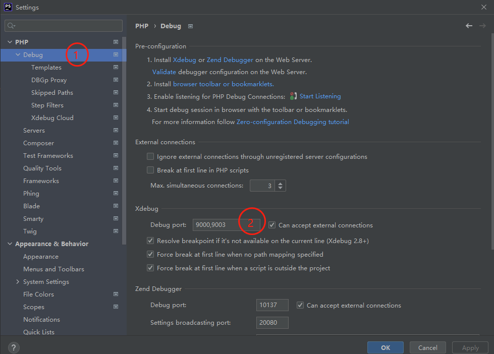 [Xdebug]zend_extension=D:/phpstudy_pro/Extensions/php/php7.3.9nts/ext/php_xdebug.dllxdebug.idekey=phpstormxdebug.remote_enable = Onxdebug.remote_host=localhost;xdebug.remote_port 默認值為9000,這里需要跟phpstorm配置一致,下面有說明xdebug.remote_port=9000xdebug.remote_handler=dbgpxdebug.auto_trace = On