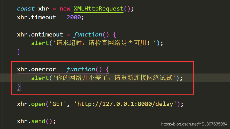 現在來看看網絡異常我們需要怎么處理,那么網絡異常在前端js里面也是有回調函數的,如下