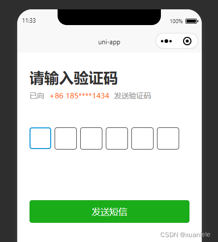 到此這篇關于uniapp 手機驗證碼輸入框(隨機數、倒計時、隱藏手機號碼中間四位)可以直接使用的文章就介紹到這了,更多相關uniapp驗證碼輸入框內容請搜索以前的文章或繼續瀏覽下面的相關文章希望大家以后多多支持!