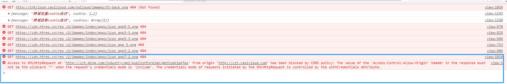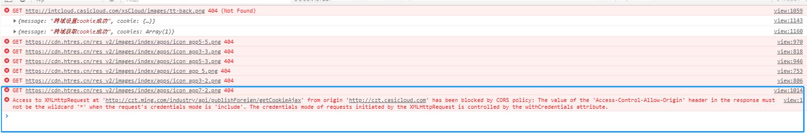 通過http://czt.casicloud.com/xxx/xxx訪問頁面,js觸發ajax跨域請求http://czt.ming.com/xxx/xxx/xxxx/getCookieAjax,前端和后臺如果不按照代碼中配置相應參數會報各種跨域錯誤;