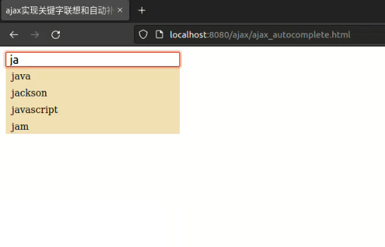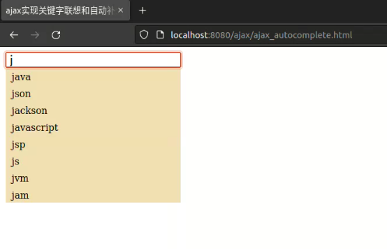 到此這篇關于Ajax實現關鍵字聯想和自動補全功能的文章就介紹到這了,更多相關ajax關鍵字自動補全內容請搜索以前的文章或繼續瀏覽下面的相關文章希望大家以后多多支持!
