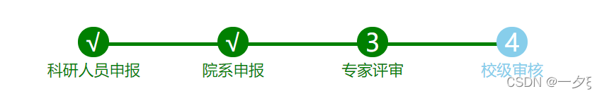 <!DOCTYPE html><html lang="en"> <head> <meta charset="UTF-8"> <meta http-equiv="X-UA-Compatible" content="IE=edge"> <meta name="viewport" content="width=device-width, initial-scale=1.0"> <title>Document</title> <link rel="stylesheet" href="2.css" rel="external nofollow" > <script src="2.js"></script> <script src="jquery.min.js"></script></head> <body> <div><div> <span>1</span> <span></span> <span>科研人員申報</span></div><div> <span>2</span> <span></span> <span>院系申報</span></div><div> <span>3</span> <span></span> <span>專家評審</span></div><div> <span>4</span> <span>校級審核</span></div> </div> </body> </html>