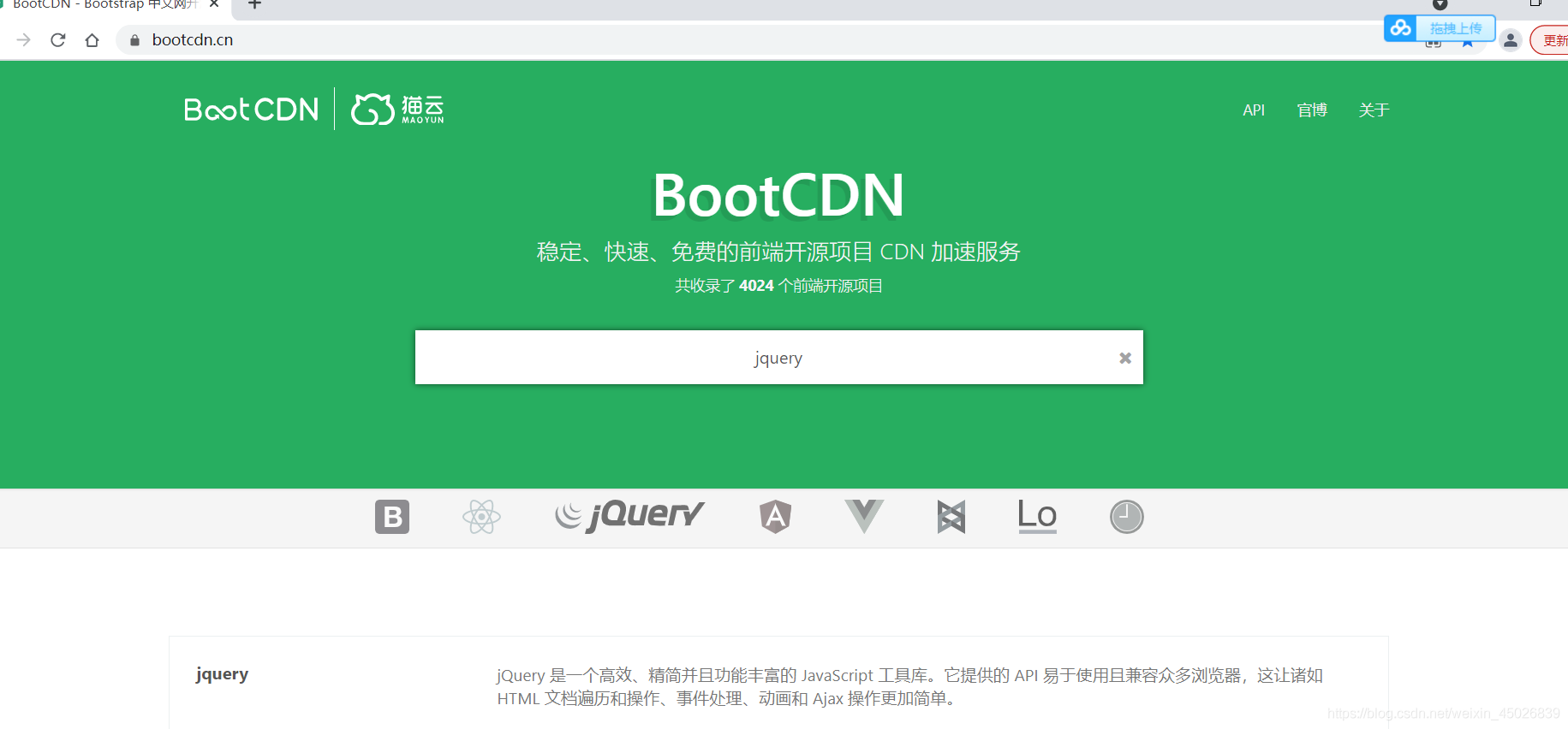 如果你不想下載jquery引入 你可以在網(wǎng)頁(yè)上輸入 bootcdn https://www.bootcdn.cn/