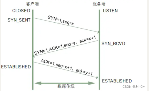 剛開(kāi)始客戶端處于Closed(關(guān)閉)狀態(tài),服務(wù)器處于Listen(監(jiān)聽(tīng))狀態(tài)。