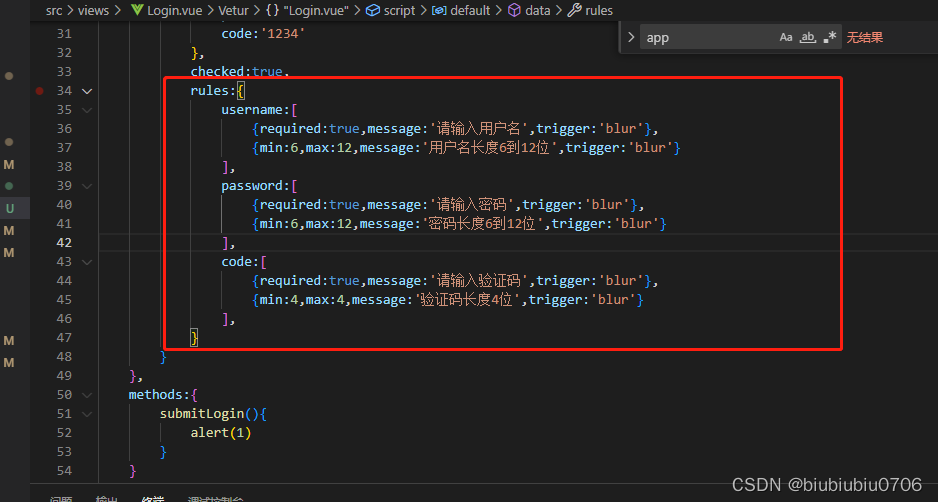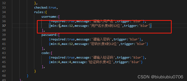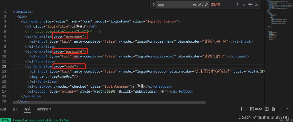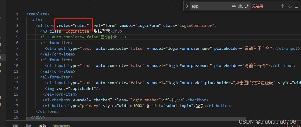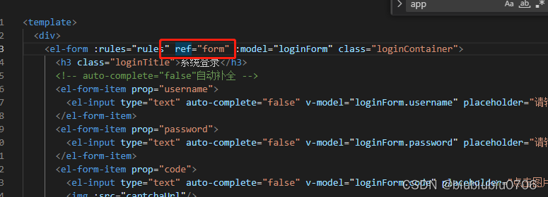校驗的username,password,code需要和上面的對應上 需要加prop屬性