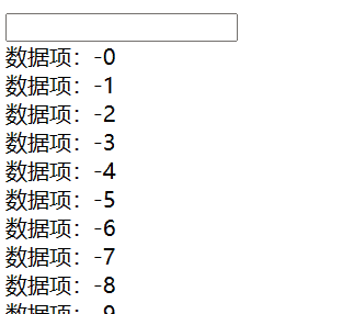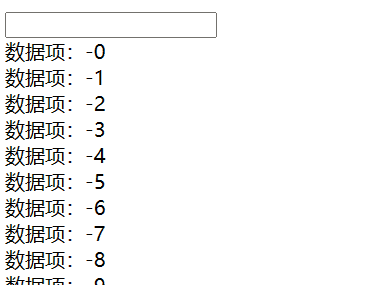 import React, { useCallback, useState } from 'react'const index: React.FC = () => { const [list, setList] = useState<any[]>([]) const handleSearch = useCallback((value: string) => { const newList = [] for (let i = 0; i < 5000; i++) {newList.push(value + '-' + i) } setList(newList) }, []) return (<> <input onChange={(e) => handleSearch(e.target.value)} type='text' /> <div>{list.map(item => <div key={item}>數(shù)據(jù)項(xiàng):{item}</div>)} </div></> )}export default index當(dāng)我們進(jìn)行持續(xù)的輸入時是十分的卡頓的,效果如下: