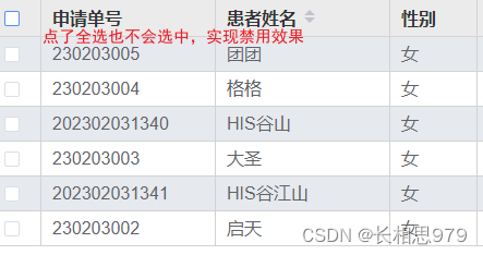 ::v-deep .seltAllbtnDis .cell { visibility: hidden; }以上2種方法可隱藏全選框,效果如下: