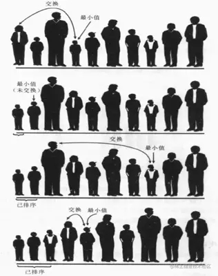 - 它的基本思想是遍歷整個列表,每次找出最小的元素,并且將它移到列表的最左邊,重復(fù)這個過程直到整個列表都有序排列。