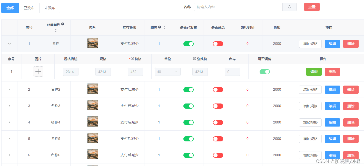 需要在統(tǒng)一個列表下,實現(xiàn)商品和規(guī)格得管理和聯(lián)動