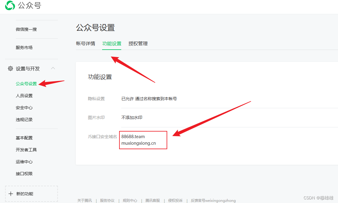 打開微信公眾平臺,在“公眾號設置”的“功能設置”里填寫“JS接口安全域名”。