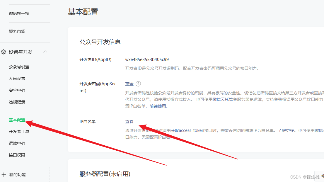 在【基本配置】里面,配置一下你的ip白名單,不設置沒法獲取access_token,沒有toekn,一切都免談。