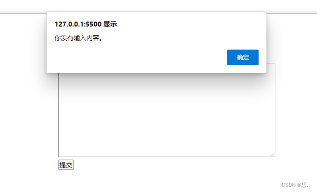 當文本框沒有輸入內容的時候,點擊提交瀏覽器提示“你沒有輸入內容”,