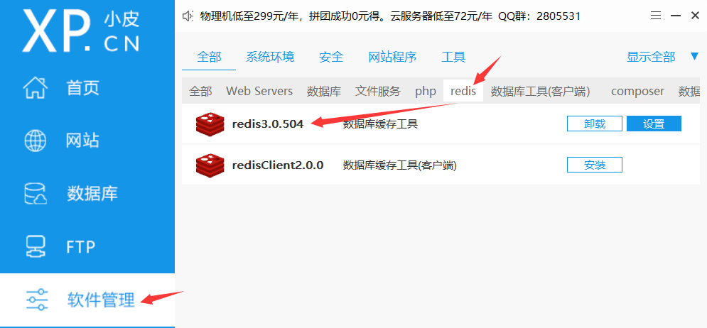 可以在小皮的軟件管理中安裝redis(比較簡單快捷),也可以先參考安裝redis文章:
