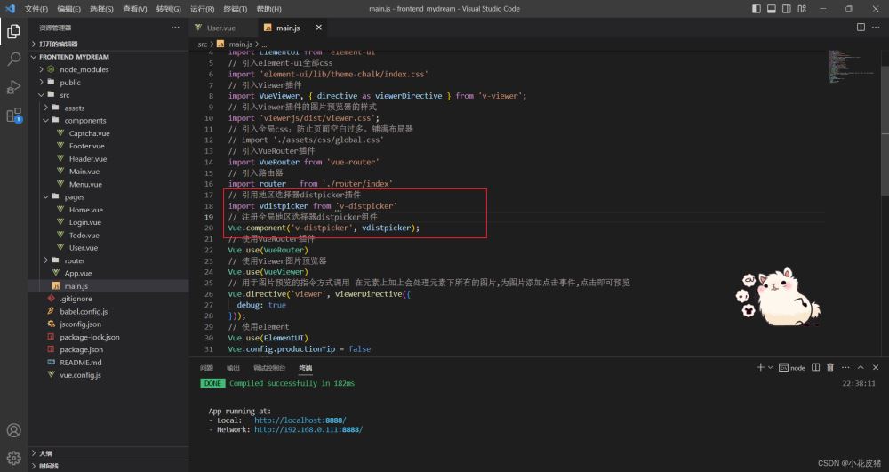 為了方便,我們可以直接在入口文件(main.js)中進行全局注冊,這樣不管哪個組件想要使用,就可以引入并直接使用了