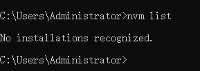 (12)再次以管理員權限重新打開cmd窗口,執行nvm list查看當前已經安裝的版本,如下表示目前尚未安裝任何node的版本