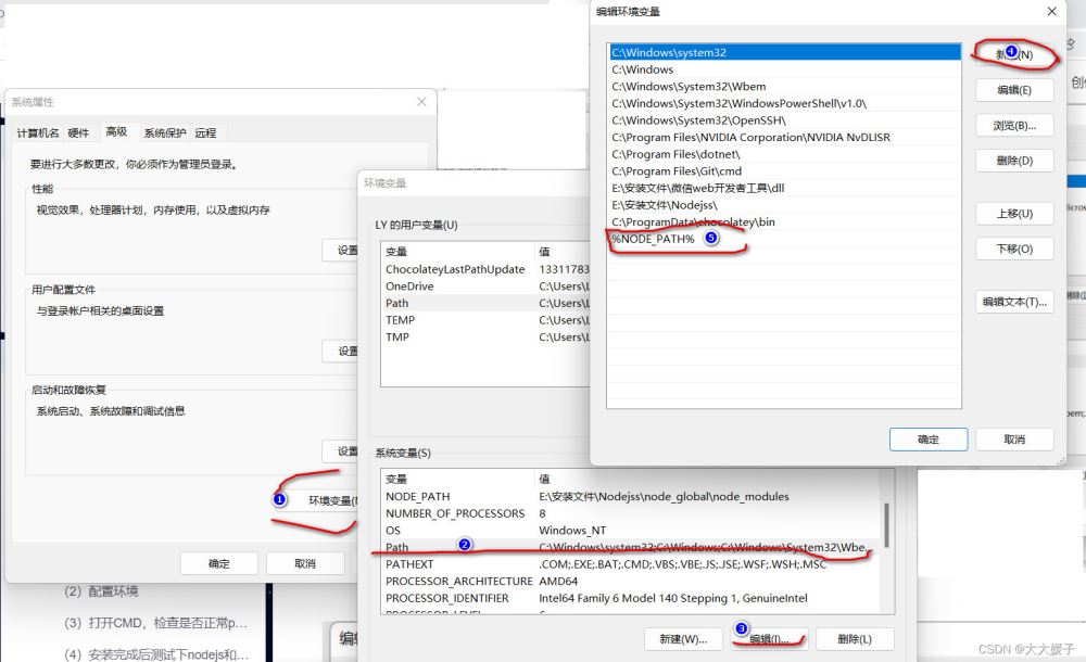 第二步: 在系統(tǒng)變量中選中Path一行,點擊編輯-----新的彈窗再點擊新建-----輸入 %NODE_PATH%。最后點確定
