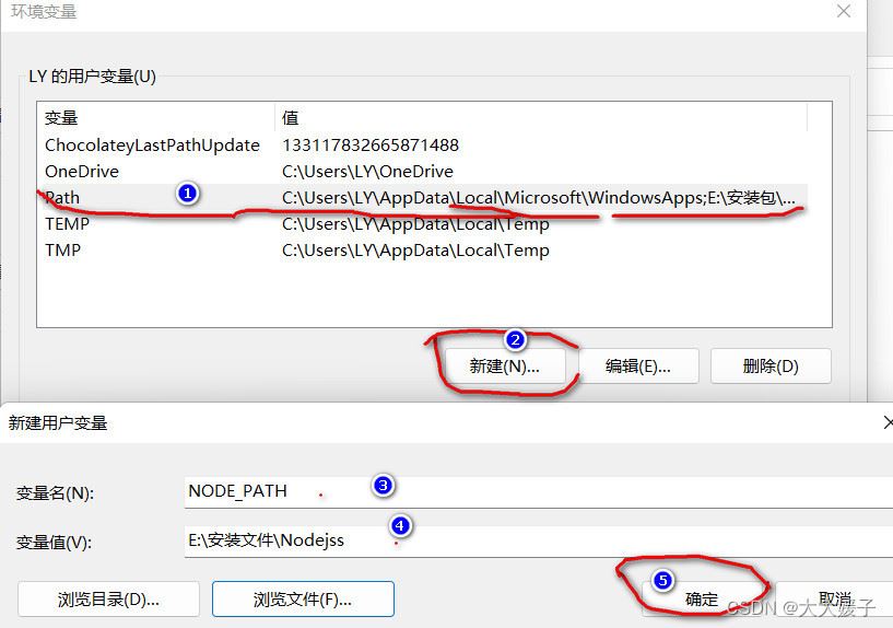 點擊新建,輸入變量名 NODE_PATH 和 變量值【你自己想要存放node的位置】