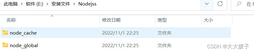 第四步:在自己想要存放node文件夾下創(chuàng)建【node_cache】 和 【node_global】兩個文件夾