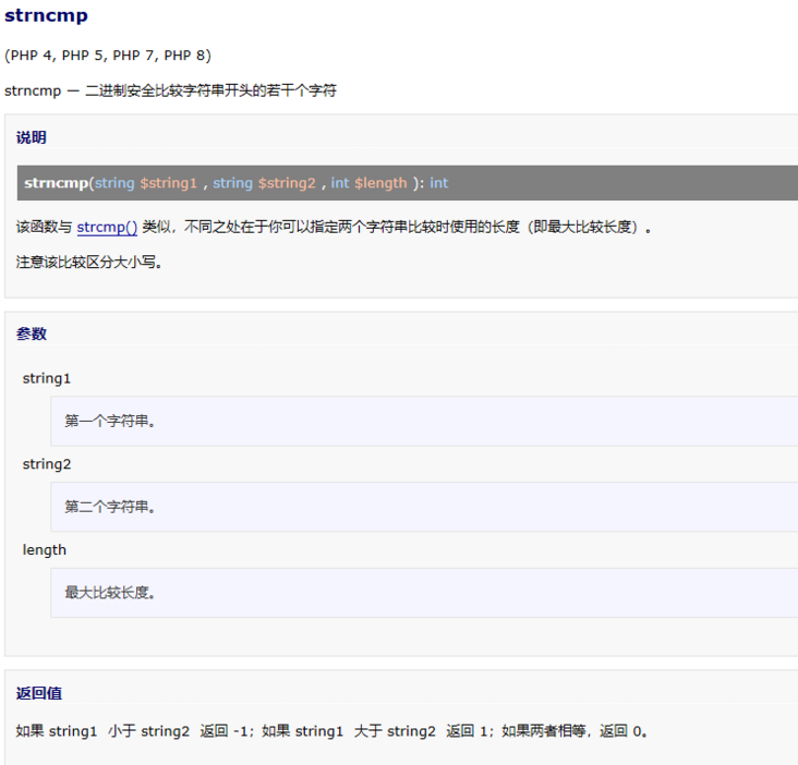 目錄strncmp函數原型源碼分析 版本PHP 5.6.401、Zend/zend_builtin_functions.c (內置函數)2、Zend/zend_operators.c3、memcmp 用法strncmp函數原型