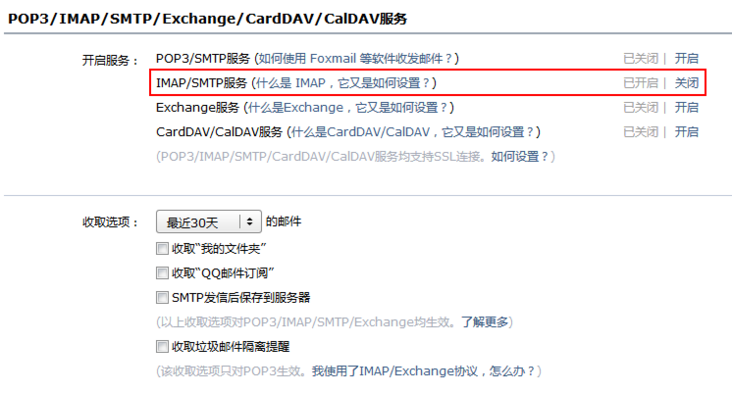 選擇 IMAP/SMTP 服務(wù),點(diǎn)擊開(kāi)啟服務(wù) 第五步:驗(yàn)證密保