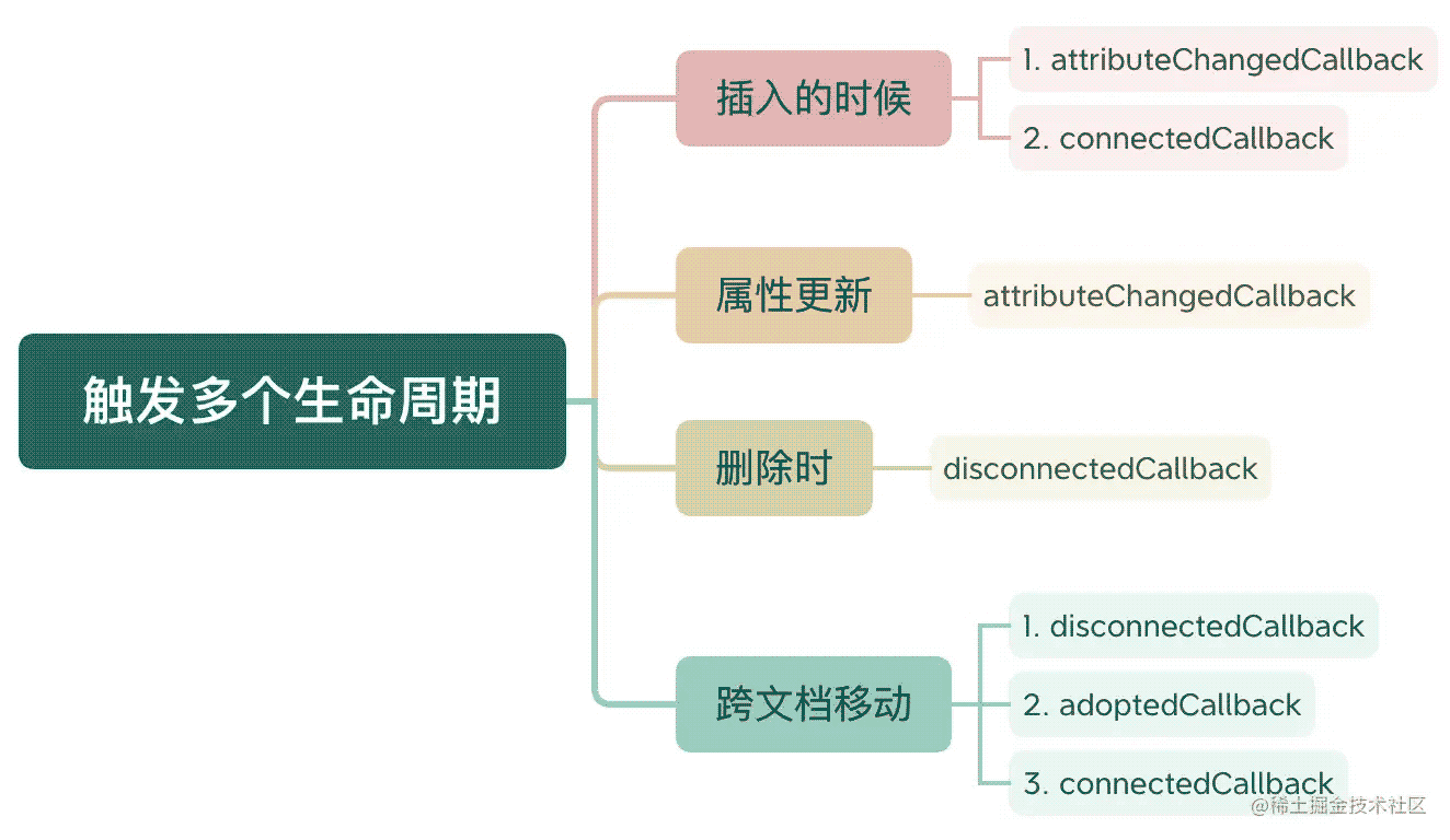 connectedCallback:插入文檔時,可能被多次觸發,比如刪除后又添加到文檔